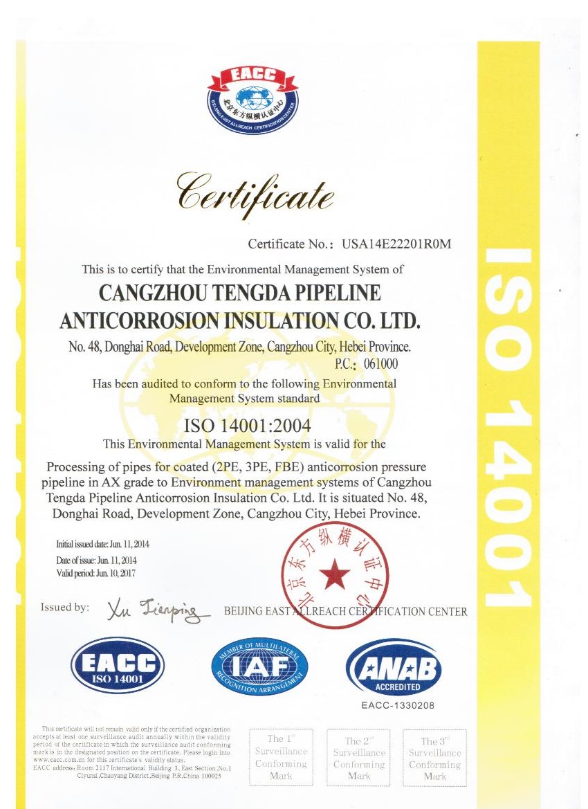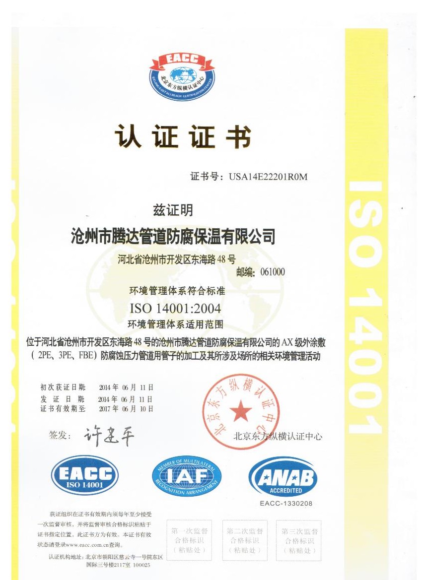 14001認(rèn)證證書 |