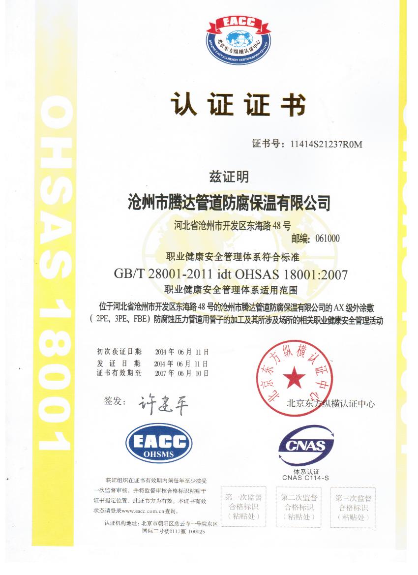 18001認(rèn)證證書 |