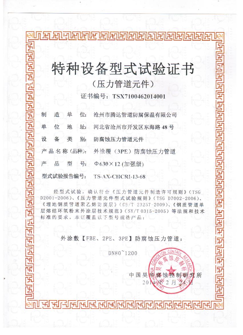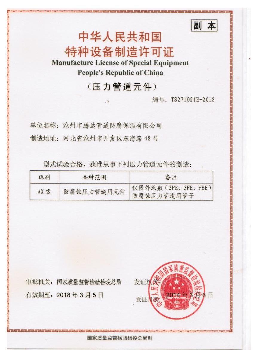 騰達(dá)防腐特種設(shè)備制造許可證2 |
