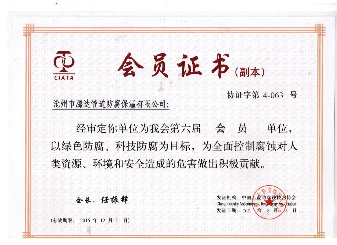 中國(guó)防腐協(xié)會(huì)會(huì)員證 |